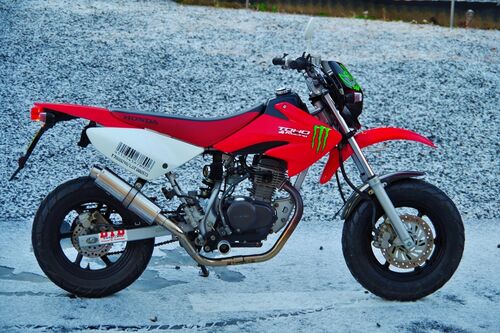雪がよく降りますねぇ(^^;) 絶賛バイク通勤中!(医者からの自転車禁止令の為) 2005年式 HONDA XR50モタード(改)。 もうすぐ17年選手になる相棒。 ここ2週間、この子で通勤していて久しぶりにモタードが楽しいと感じた。 ただ・・・雪道はこのタイヤでは自殺行為…