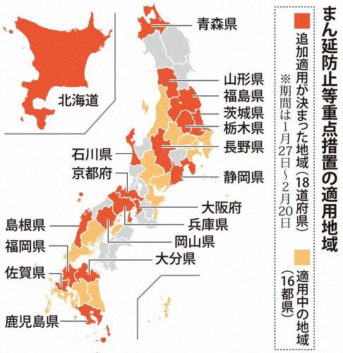 マンボウさん、やはり延長になりましたねぇ 広島県は1/9(日)と早くからでしたが・・・ 結局、正月明けからの『マンボウ』効果も無く、記録更新の毎日。 この最悪の結果に広島県をはじめ、国も説明無いし~気が付けば 47都道府県ー(16+18)=残り13県「適応外」 …
