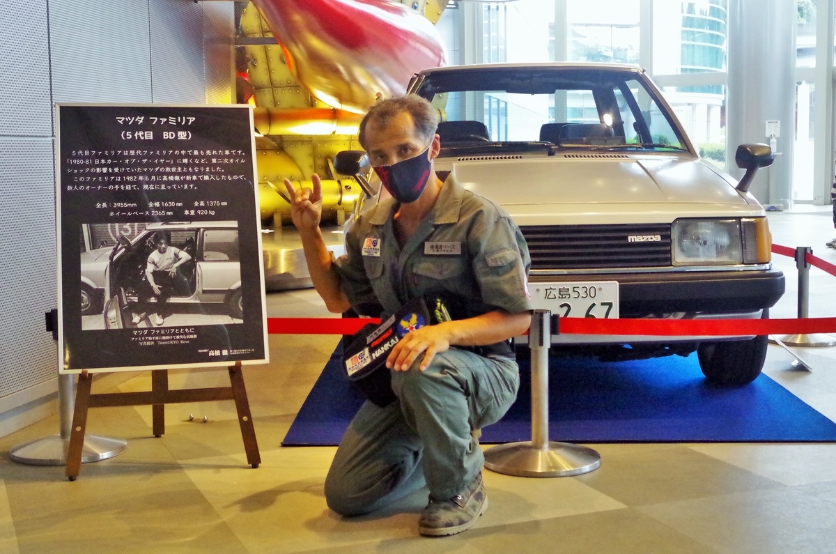 愛車のMAZDA ファミリアの前で撮影。