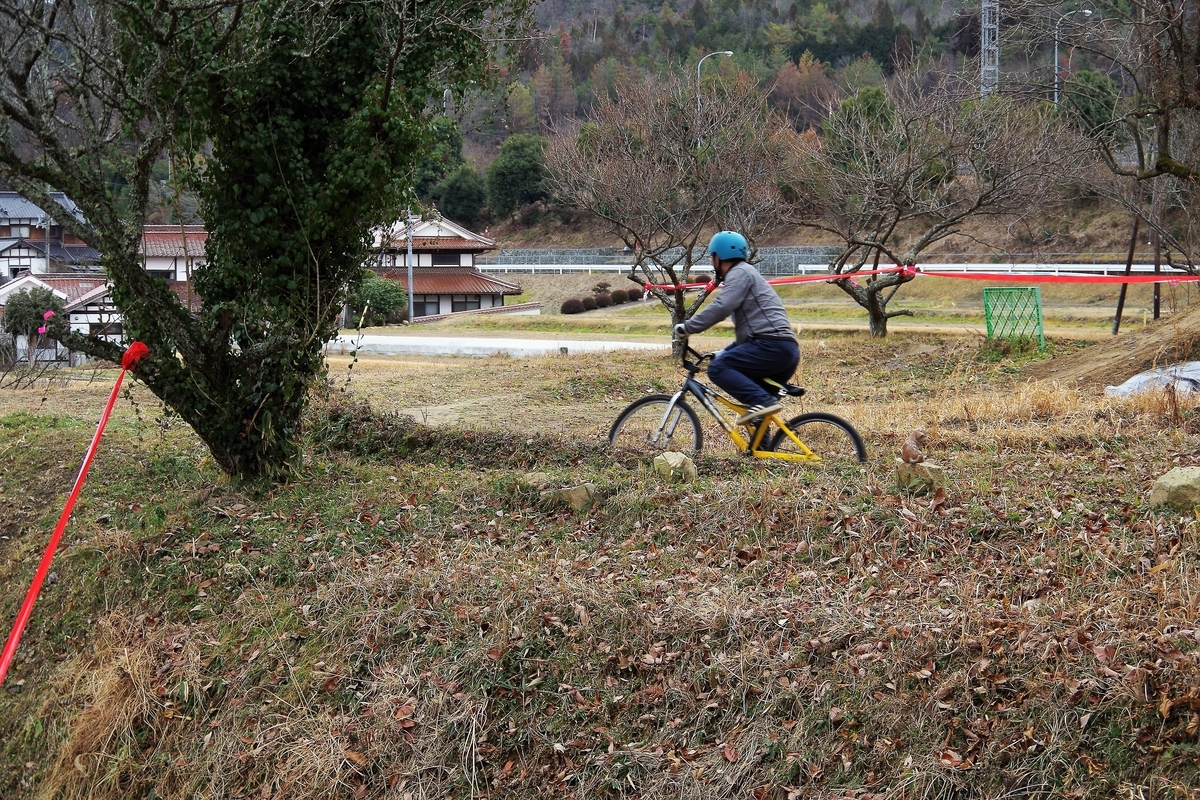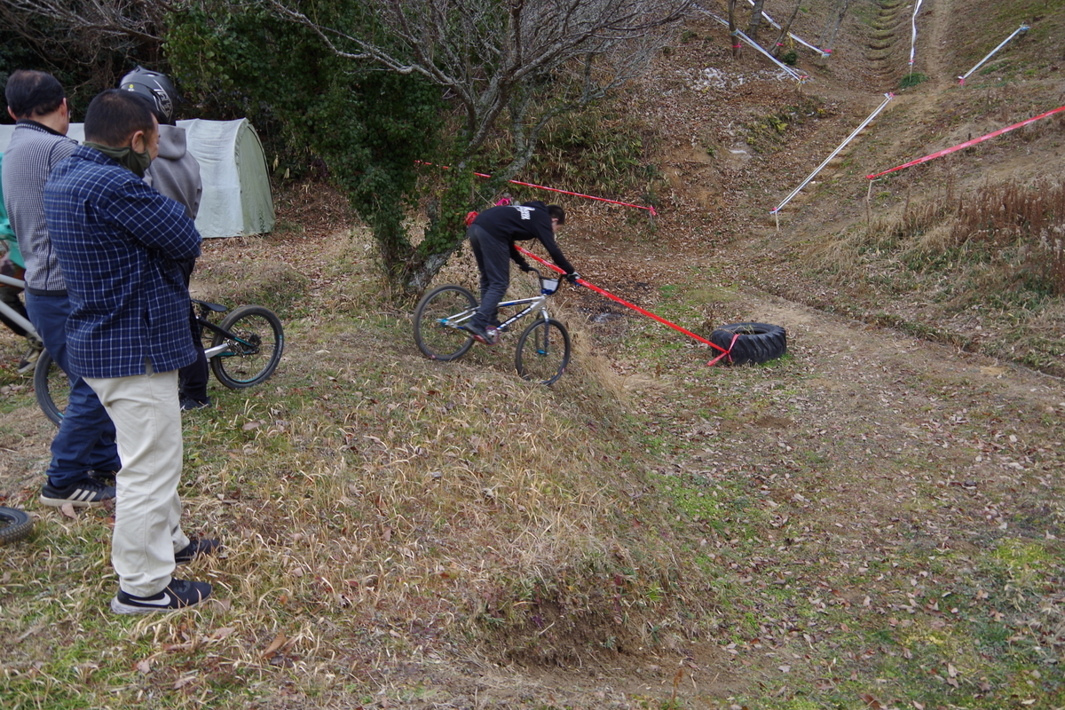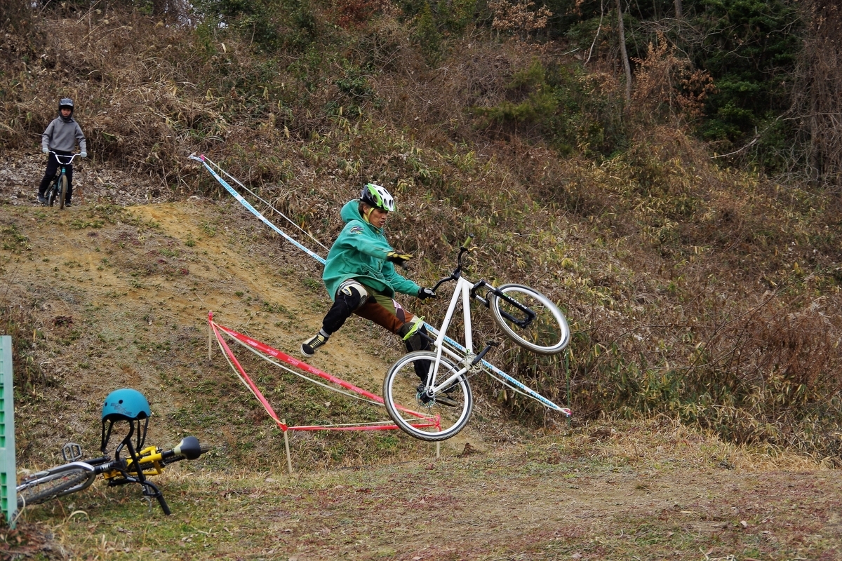汚れても良い格好で、出来ればヘルメット&グローブ(軍手などでもOK)、スニーカー(ペダルに喰い付きやすい靴)で来ていただければ自転車は用意しております。