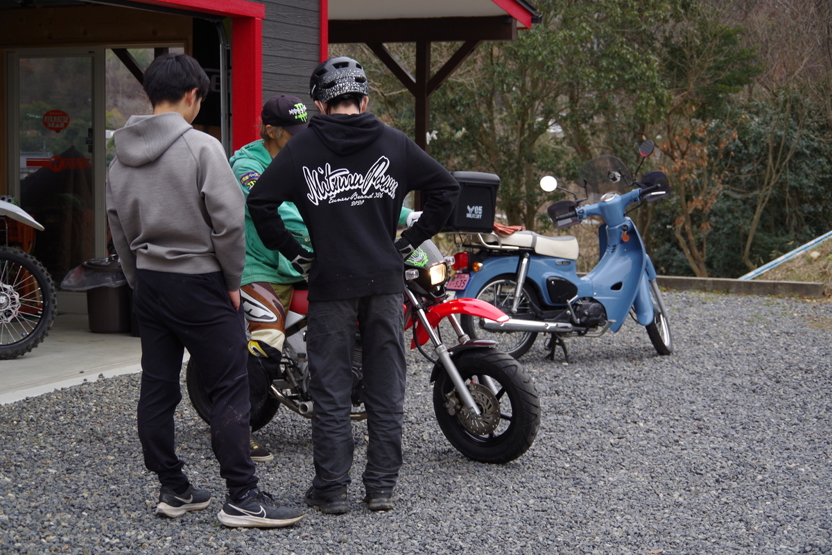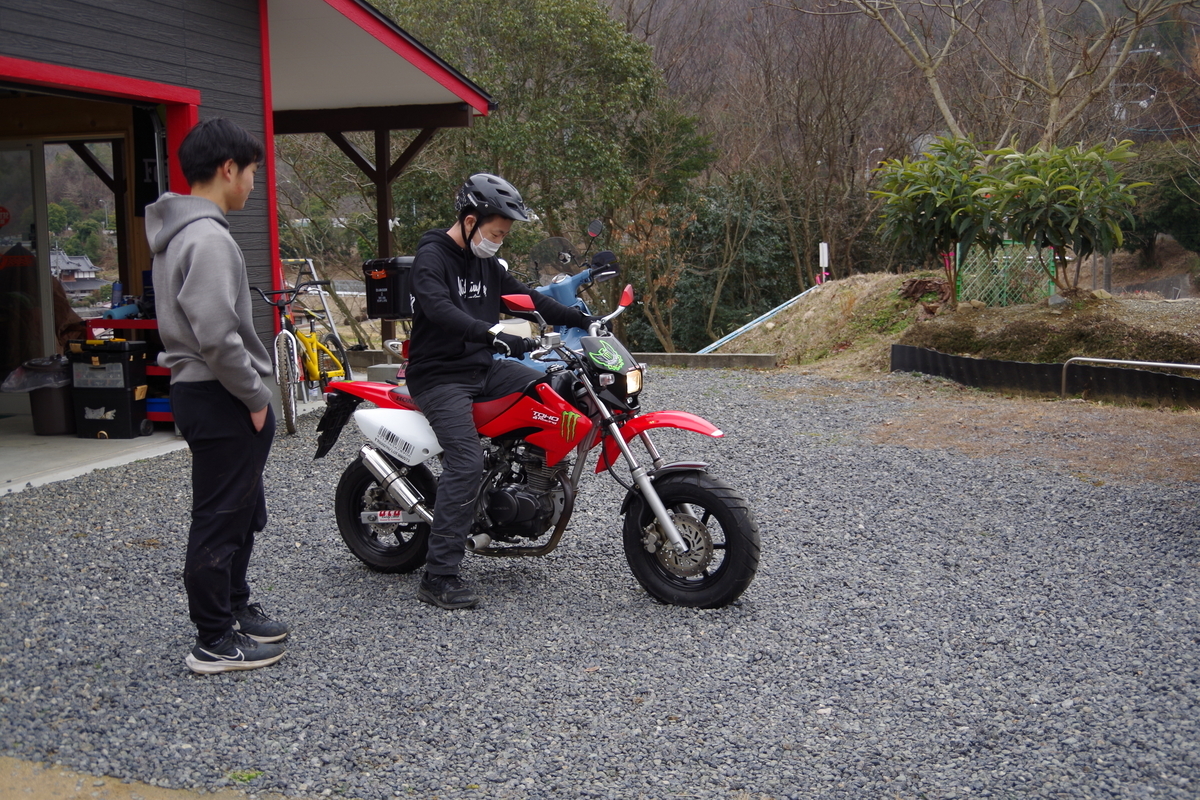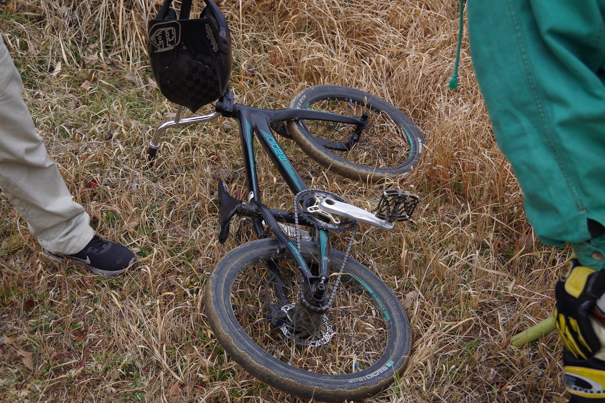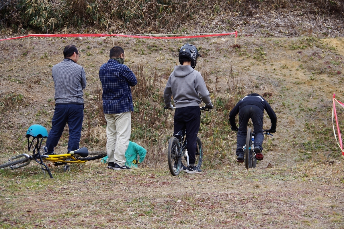 汚れても良い格好で、出来ればヘルメット&グローブ(軍手などでもOK)、スニーカー(ペダルに喰い付きやすい靴)で来ていただければ自転車は用意しております。