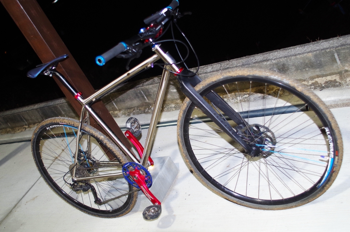 昼間に嫁に小谷BPの路面整備お願いしてたので、帰宅後にMTB改(シクロ用)で走行して路面固め。