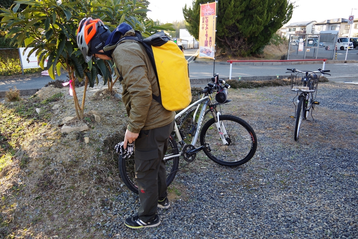 来月のシクロクロス最終戦(3/26)にMTBで初挑戦する晴れ缶氏は海田町から自走で参上!