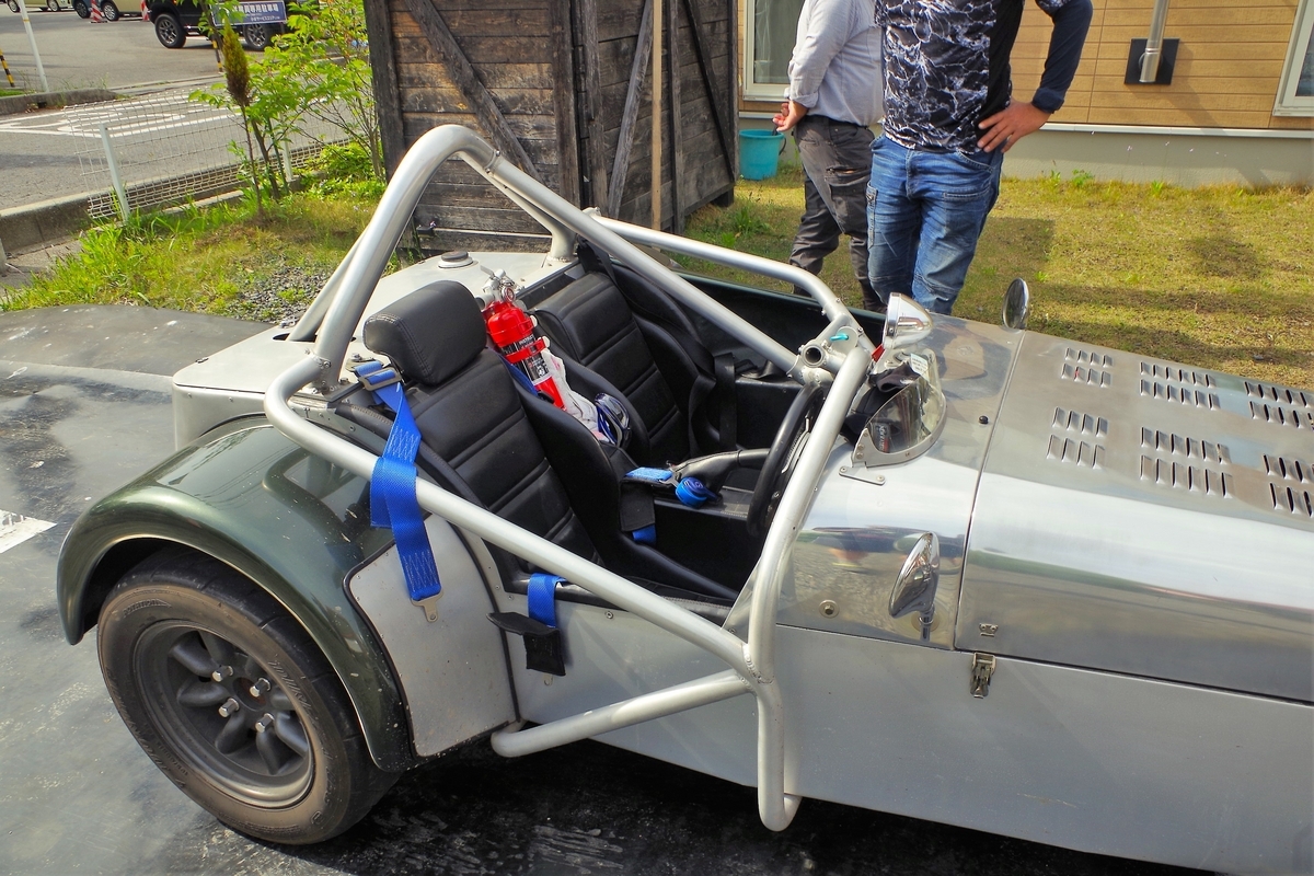 ロールバーの形状も車検対応に部分的に取り外さなければいけませんが、転倒した場合にはこの構造でしたら体を守っていただけそうです。