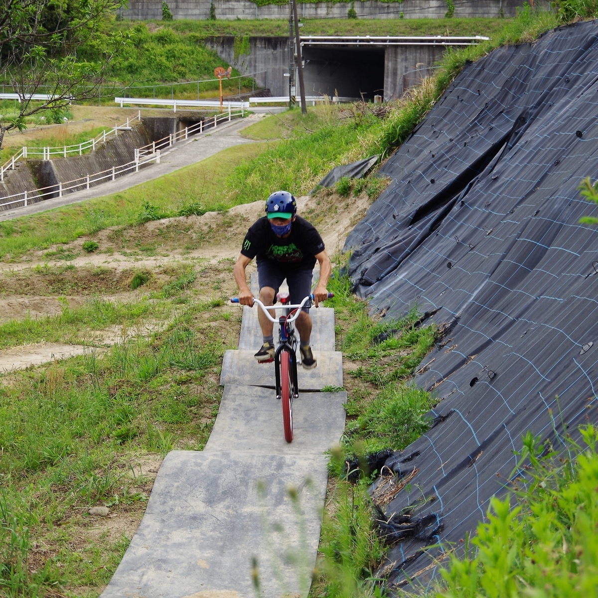 前回のコース整備で皆さんの協力で各所に☂雨対策でゴムシート(マット)を敷きましたので多少の雨でも大丈夫!