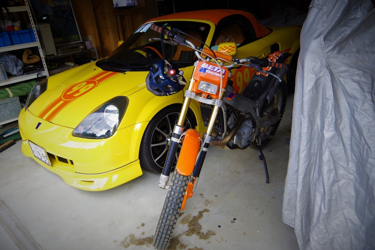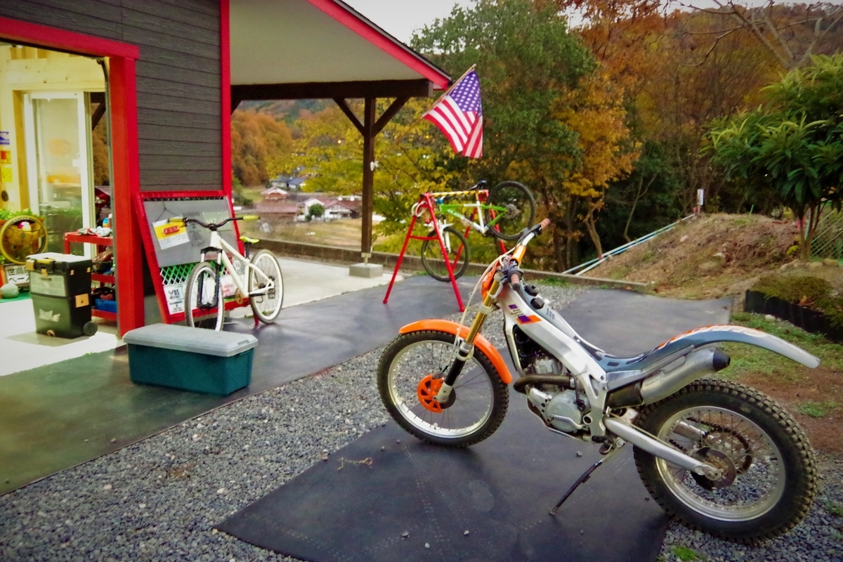 15:00予約なので、それまでガレージの掃除とトライアルバイクでの練習。