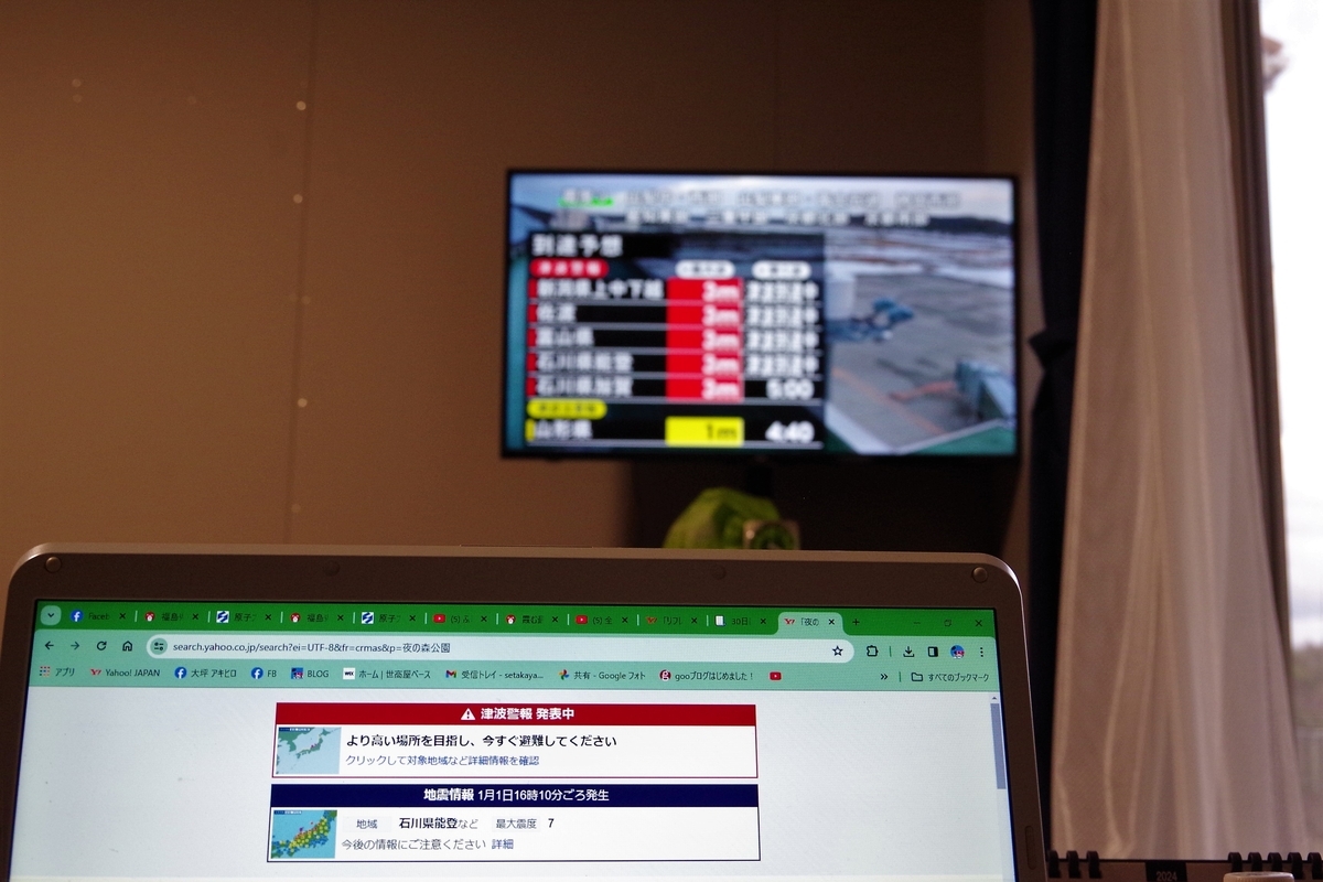 元旦の16:10、正月だと言うのに公開が遅れていた【フォトリポート】制作して一段落していた所、初詣に出掛けようと着替え中にテレビから緊急警報が・・・