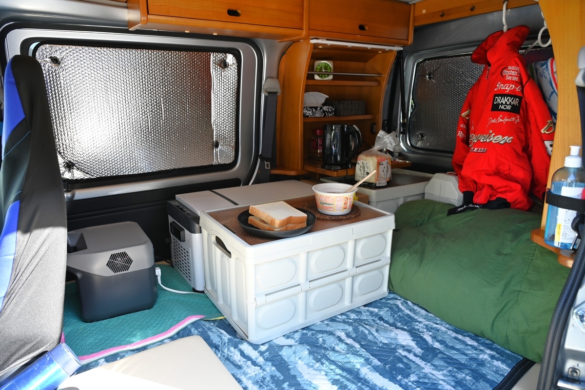 現地を見て災害ボランティアに参加する為に今度は「車中泊」専用の軽バンを購入。